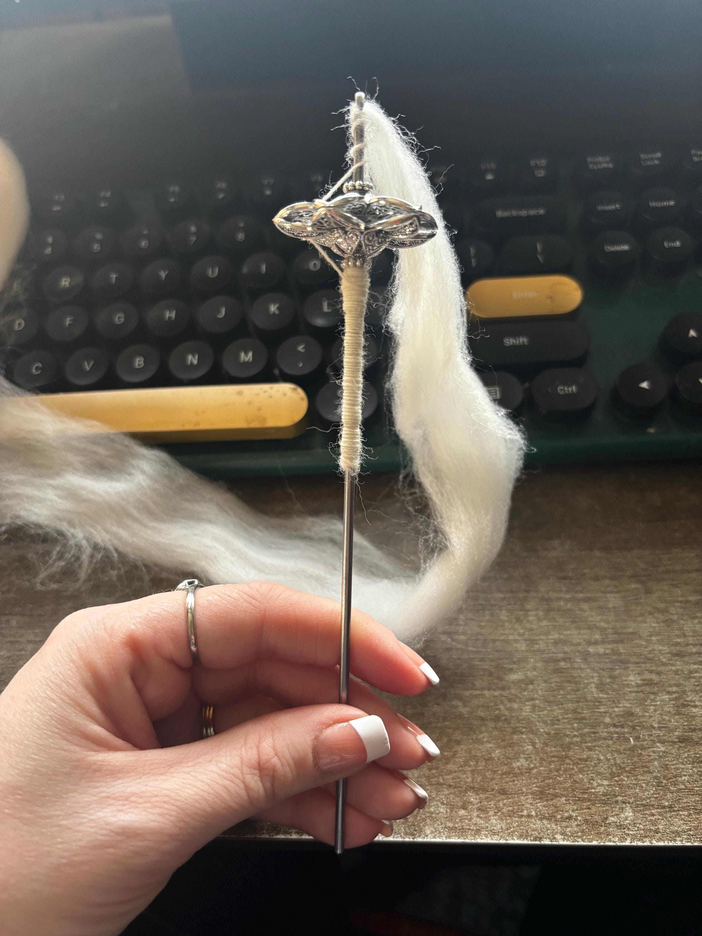 I love this spindle. It looks like it should be elvish or something. I'm new to spinning so it'll take a bit of getting used to but it's beautiful. Hope to buy more soon. I love the option of spinning thinner with a drop spindle as my skills with a support spindle are no there at all!