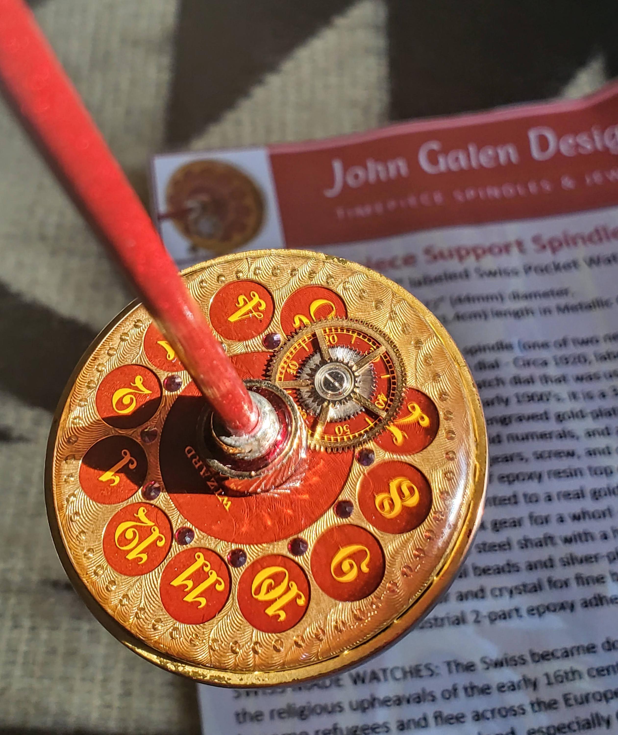 Antique Timepiece Support Spindle No.186 ~ One-of-Two made - Steampunk Design - Tibetan Size - Circa 1920 "Wizard" labeled Swiss Pocket Watch Dial